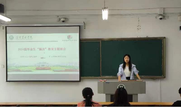 6月1日-6日,学院毕业班辅导员分别在二教、文学艺术楼教室开展“毕业生廉洁教育”主题班会,班会由各辅导员主持,围绕“法制纪律教育、反腐倡廉教育、思想道德教育、理想信念教育”四个方面展开,期间通过引导学生观看廉洁教育宣传片、与学生展开讨论方式加深毕业生对廉洁的认知。