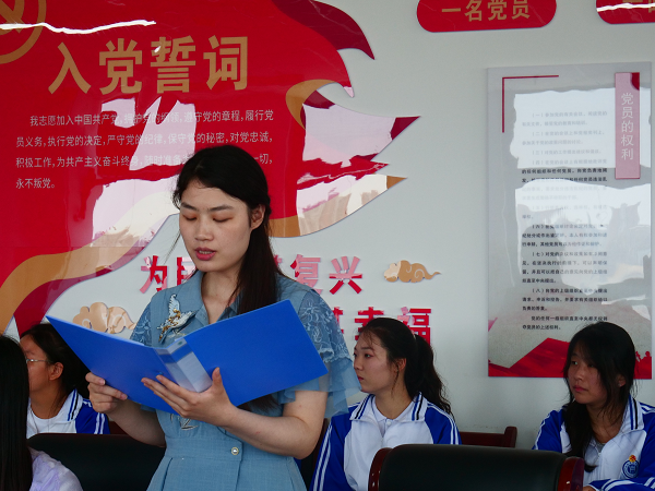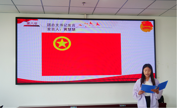 最后,黄慧慧老师对新加入中国共产主义青年团的各位新团员表示热烈的祝贺,并向新发展团员提出三点希望:要坚定理想信念,提高自身道德品质;要勤于学习,勇于实践,做一个学问与行动统一的人;要甘于奉献,努力做他人的典范。