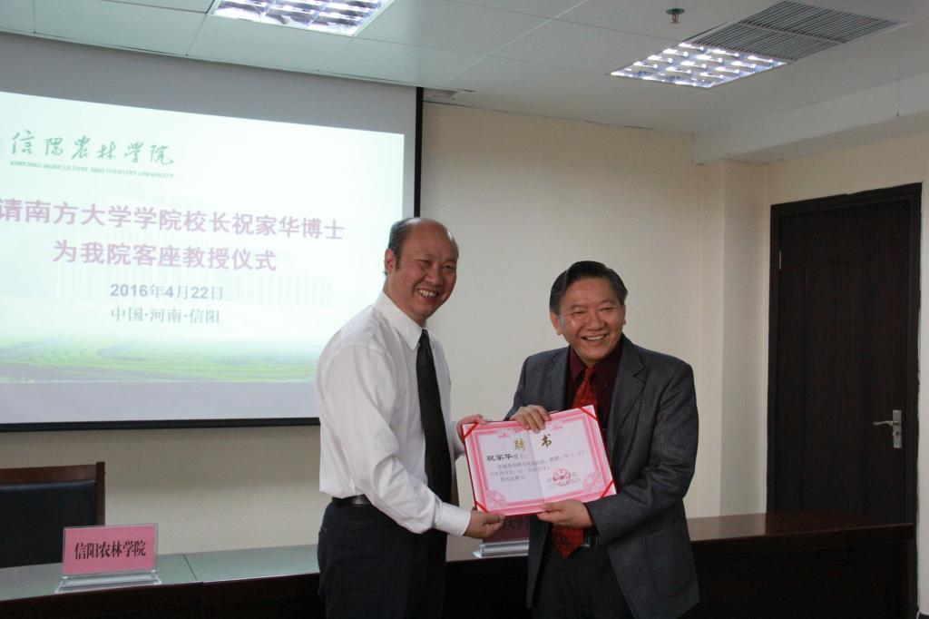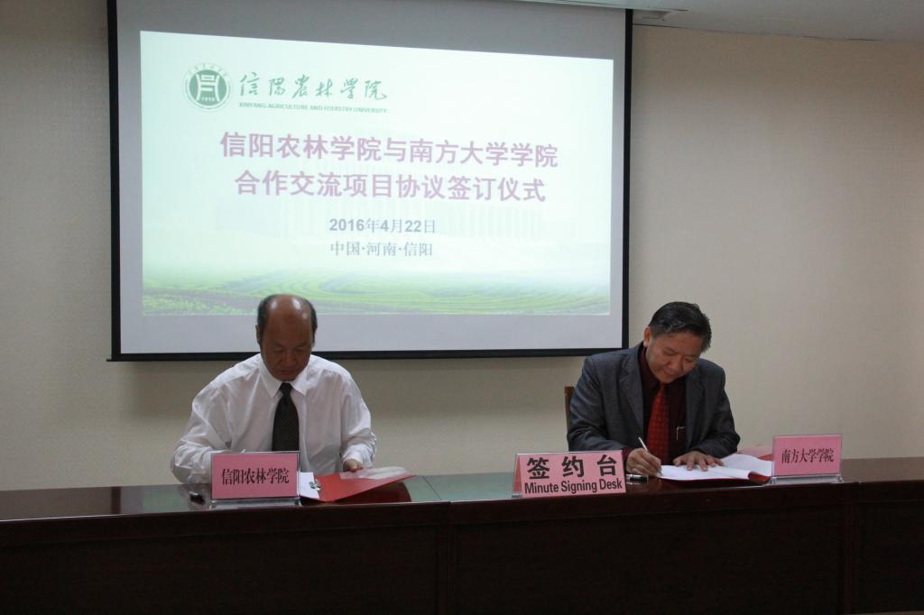 22日上午,郭长华校长与马来西亚南方大学学院校长祝家华博士分别代表两校签署了“中国beat365在线平台官网与马来西亚南方大学学院合作交流项目协议书”。为进一步推进两校之间的合作,beat365在线平台官网决定聘请南方大学学院校长祝家华博士为beat365在线平台官网客座教授,郭长华校长向祝家华博士颁发了聘书。仪式完毕之后,南方大学学院代表团一行在赵一鹏副校长等人的陪同下参观了beat365在线平台官网茶学实习基地-----广义茶叶种植基地,茶学院院长郭桂义教授及种植基地的李广义董事长,就信阳茶叶的各方面情况向马来西亚客人作了介绍,随后参观了茶山。