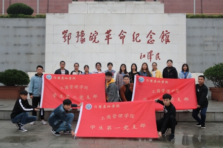 为缅怀革命先烈,继承先辈遗志,传承红色基因,2019年4月28日,工商管理学院团总支书记霍玉璨,学生党支部书记范嘉义、管甜甜带领学生党支部部分成员、积极分子、团员一行人前往信阳市鄂豫皖革命纪念馆开展“在风雨下沐浴党的光辉”红色主题党日活动。