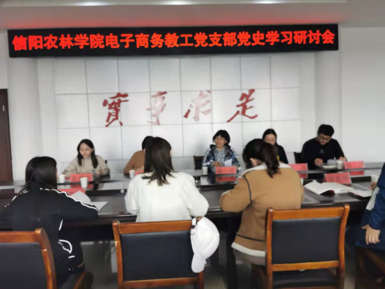 为学习贯彻习近平总书记在党史学习教育动员大会上的重要讲话精神,深入贯彻落实党中央“学党史、悟思想、办实事、开新局”学习教育工作部署,用党的奋斗历程和伟大精神激励党员干部,10月23日上午,电子商务教工党支部全体党员同志在平桥区委党校三楼会议室开展了党史学习教育专题研讨会。
