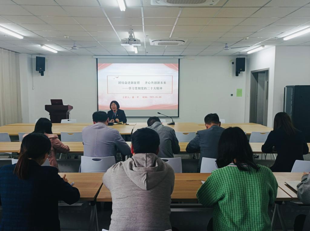 为深入学习贯彻习近平新时代中国特色社会主义思想和党的二十大精神,提高工商管理学院教师党员思想理论水平和工作实践能力,努力营造浓厚的学习氛围。2023年5月9日,学院院长潘一平同志为全体教师党员开展“团结奋进新征程,齐心共创新未来”深入学习贯彻党的二十大精神主题党课。