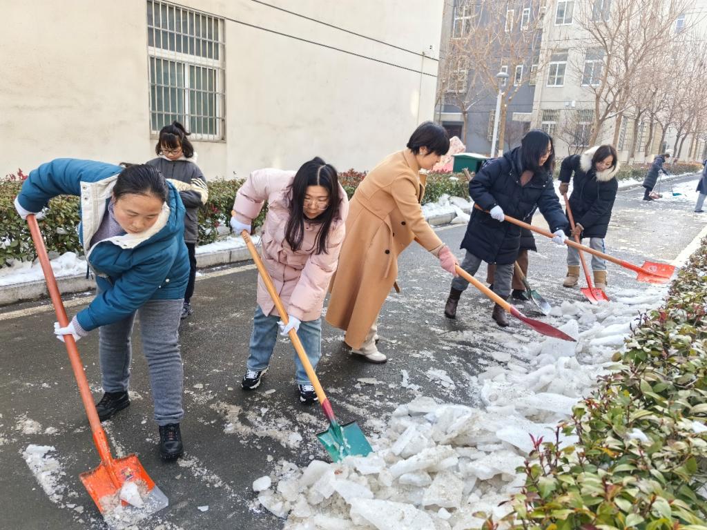 党员同志不畏严寒,拿着铁锹、扫帚等工具迅速投入铲冰除雪活动。经过近三个小时的清扫,宿舍楼13栋-19栋中间主干道、通往宿舍门口道路被开辟出畅行的无雪路,保障了广大师生安全出行。党员率先垂范、带头服务师生,为学生返校出行保驾护航,切实提升了同学们的安全感、幸福感和获得感。(撰稿 摄影/宋晓方)