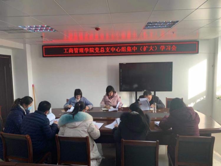 1月11日,工商管理学院党总支在行政楼717会议室召开理论学习中心组(扩大)学习会,学院领导班子成员、教工和学生党支部书记参加学习会,党总支副书记王宇平主持会议。