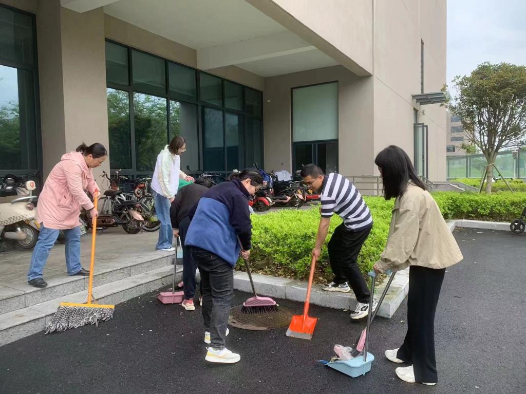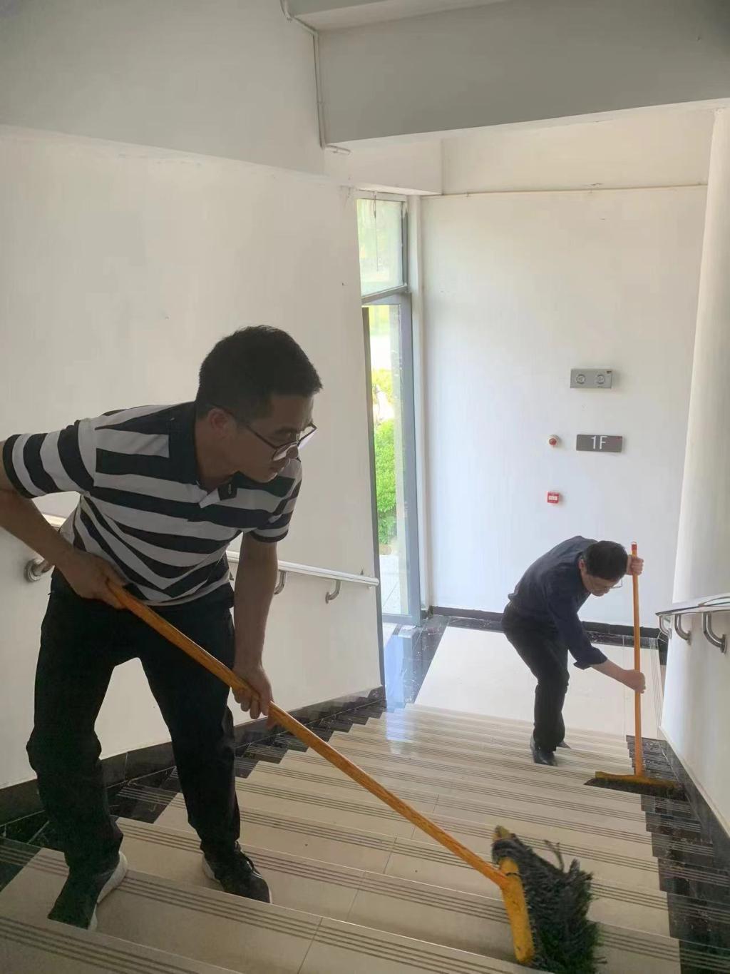首先,宋晓方领学文章《习近平:组织动员亿万职工积极投身强国建设、民族复兴的伟大事业》,随后,支部全体党员教师手拿拖把、笤帚、抹布等,对双创中心的楼前、楼后、走廊以及办公室进行了认真细致地打扫,为师生创造更加清洁、舒适的环境。