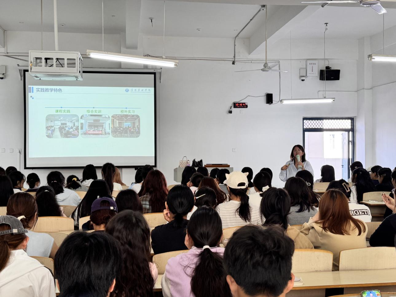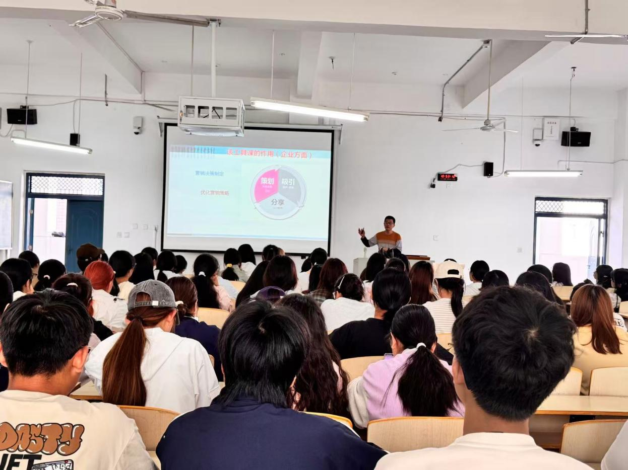 活动开始,市场营销教研室主任郭昭君首先从认识市场营销专业、培养目标与毕业要求、课程体系、培养方案特色等四个方面带领大家走近市场营销专业,提高同学们对专业学习的兴趣和对未来就业的信心。副主任宋歌以“自修之道”为主旨,强调了在大学自主学习的重要性,让同学们珍惜四年大学生活,从书籍里增长知识、在活动中积累经验,过一个丰富而有意义的大学。随后副教授周其文深入浅出的讲述了市场营销的本质和作用,加深了同学们对所学专业的认识和理解。青年教师胡淑瑞通过对《大数据营销》课程的生动介绍,让同学们深刻领会到这门课的“底层逻辑”,最后两名优秀学生代表上台分享自己在大学的学习心得和就业创业思路。