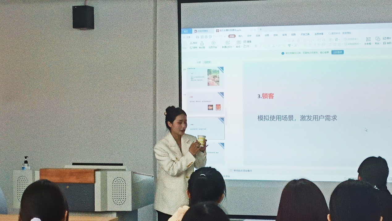 在此次培训活动中,来自茶产业直播电商基地的一名一线主播为社员成员们具体讲解了直播带货中的话术技巧。在讲解过程中,主播老师向社团成员们着重强调以下几个点:第一,主播在直播过程中要特别注意表情动作、声音语气和仪表仪容这三方面;第二,主播在直播带货的过程中要把握整体节奏,切实落实开场、留人、福利品、逼单、和落款等流程;第三,主播要苦练直播话术,在实战中积累经验。最后直播老师还给社团成员们布置了作业,表达了对社团成员们的殷切期望。