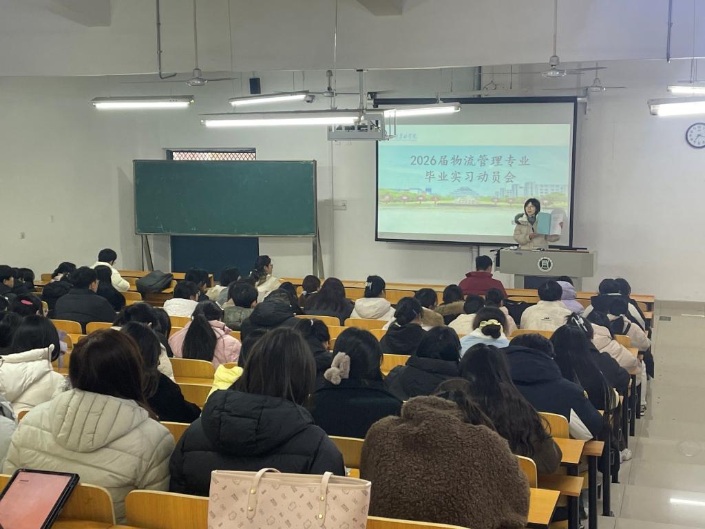 为扎实推动本科实践教学,提升学生专业综合能力,明确实习目标与要求,物流管理专业于12月23日下午在二教306召开2026届毕业生实习动员大会。会议由物流管理教研室主任梅宝林主持,2026届物流管理专业全体毕业生参加。