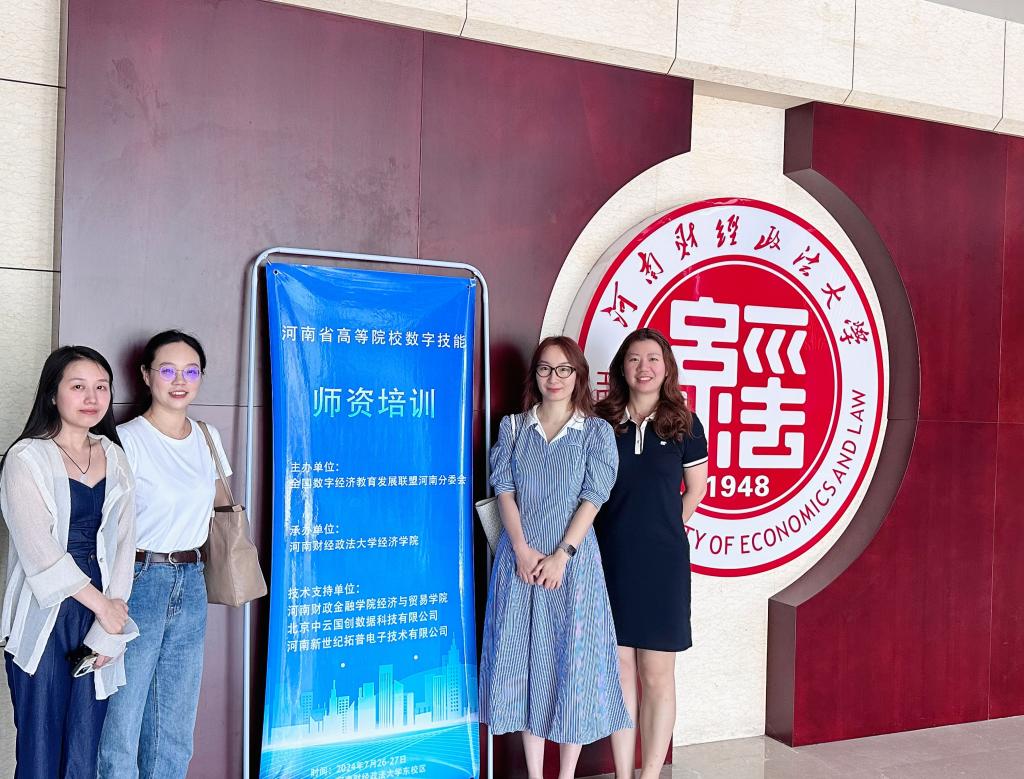 2024年7月26日—27日,由全国数字经济教育发展联盟河南分委会主办,经济学院承办,河南财政金融学院、北京中云国创数据科技有限公司、河南新世纪拓普电子技术有限公司协办的“河南省高等院校数字技能师资培训班”在河南财经政法大学郑东校区成功举办。我院刘源、唐文婷、蔡锦杨、孟益臣四位教师圆满完成全部学习内容,并经过考核顺利结业。