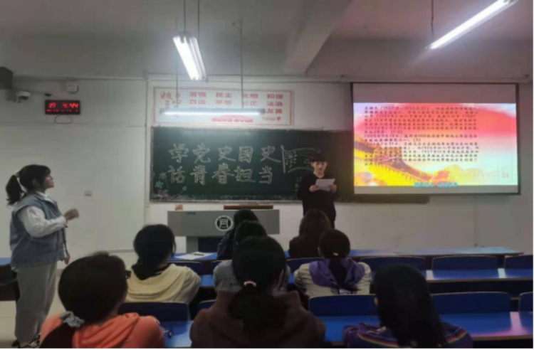 为庆祝中国共产党成立100周年,回顾党的光辉历程,工商管理学院于2021年3月25日在一教开展了以学党史国史 话青春担当为主题的团日活动。