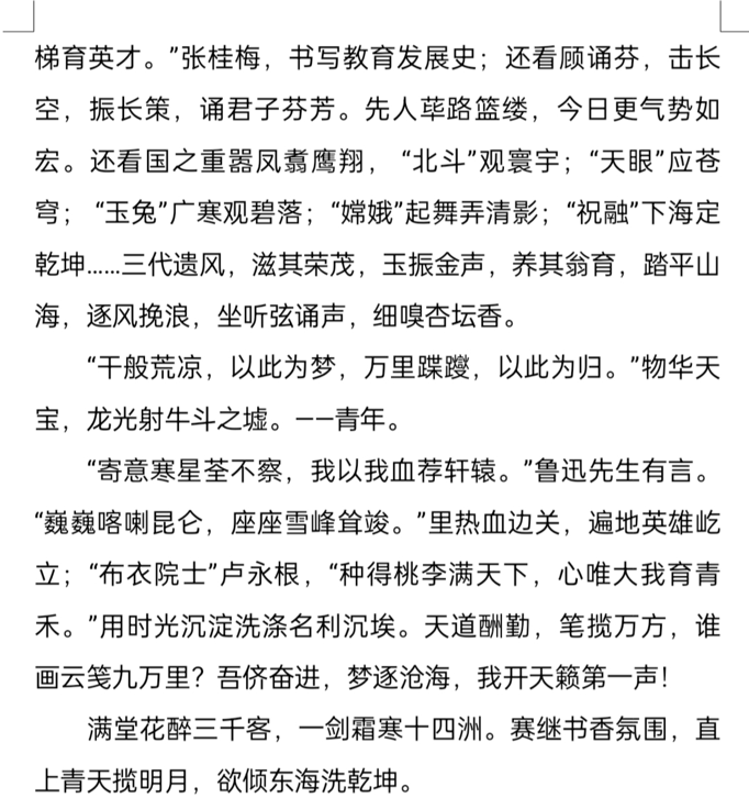 本次活动采用电子版征文的形式展现,我院学子积极响应,踊跃参加,共收获315篇征文。大家从不同的角度进行构思,以此来展现阅读的重要性。同学们上交的作品内容丰富,语言优美,构思巧妙,无处不透露着对阅读的热爱,其中有提到了阅读《文化苦旅》后得出的感悟,也有在认真剖析古诗词后与诗人产生的共鸣,也有通过构思和打磨语言后自己创作出的文言文,各式各样的文章都体现了我院学子对阅读的重视和热爱。经过激烈的角逐,最终评选出一等奖一名,二等奖两名,三等奖三名。