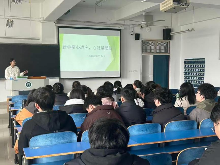 班会伊始,辅导员通过一段生动有趣的视频,直观地展现了新学期可能面临的各种挑战与变化,引发了大家对自身适应状态的思考。随后,辅导员详细讲解了一些常见的心理调适方法,从时间管理技巧到情绪调节策略,为同学们提供了实用的应对方案。并鼓励同学们在新学期保持乐观向上的心态,勇敢面对困难,积极寻求帮助,让“心”适应成为成长的助力,用“心”能量开启新的征程。