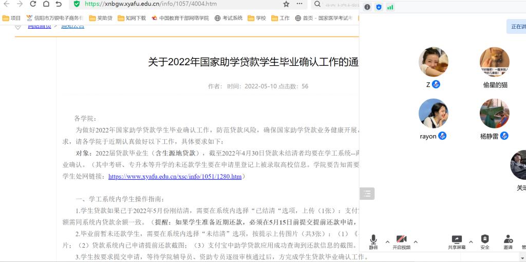 为了进一步加强对助学贷款毕业生的诚信教育,促进我院助学贷款工作的良性发展。工商管理学院于5月11日晚上8:00在线上召开了工商管理学院2022年2022年毕业确认、诚信云宣誓暨感党恩教育。资助专员阮晓晖主持会议。