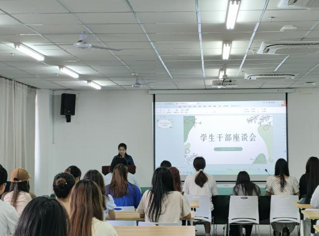 会上,赵莹洁老师首先向学生干部介绍本次座谈会主题,鼓励学生干部提出在日常生活和管理工作中发现的情况和问题,大家踊跃发言,气氛热烈。赵老师认真听取了学生干部们的发言,提出建议与解决方法,并进一步鼓励学生干部们在接下来的工作中更加认真负责做事,继续为同学们做好服务,做学院与学生之间最坚固的桥梁。