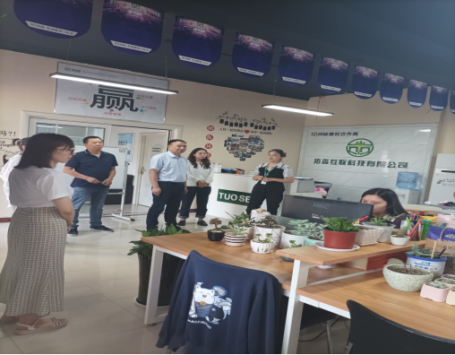 园区位于浉河区金牛路,定位于着重发挥信阳市及浉河区茶叶、板栗等农特产品优势,支持并培育本土品牌电商发展,主要吸纳平台类电商企业、应用类电商企业、服务类电商企业、电子商务相关机构等,目前已有三十多家知名区域分部、行业总部公司入驻办公。在园区大厅,张世军一行参观了园区入驻企业的LOGO形象展示墙,听取了电商产业园招商企服经理高培培对园区发展历程、运营情况及入驻企业情况的讲解。随后,共同走访了信阳锐之旗网络科技有限公司、拓森互联科技有限公司、信阳联樽电商有限公司、信阳聚星电商有限公司、信阳杰睿电商有限公司和直播间等,认真听取了各企业对电商业务和用人需求的介绍,了解了各企业在运营中遇到的实际问题,并就校企下一步合作达成了初步共识。。