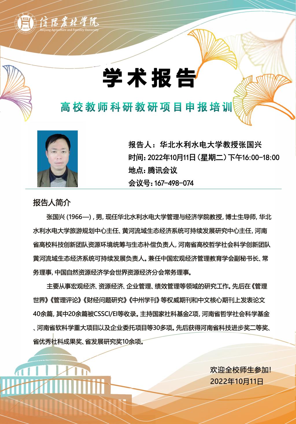 工商管理学院学术报告预告——高校教师科研教研项目申报培训