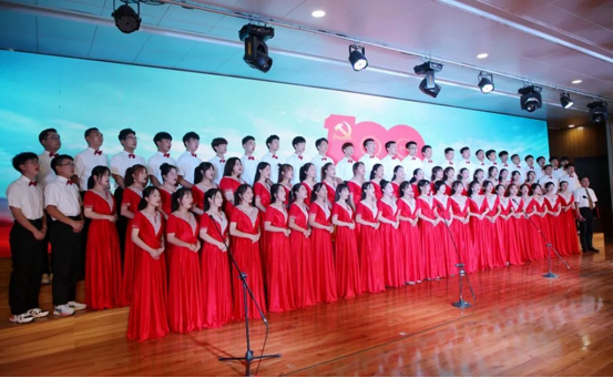 在党的百年华诞来临之际,工商管理学院分工会与图书馆分工会于2021年6月22日参加学校举办的以“颂歌献给党,启航新征程”为主题的庆祝中国共产党成立100周年师生合唱比赛。
