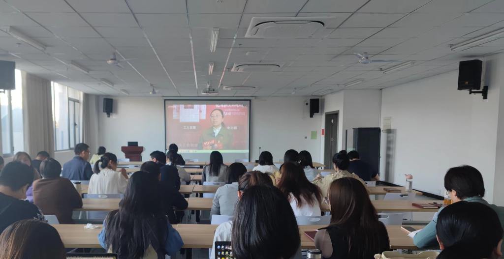 会后,全体教职工集体收看了代表访谈。(撰稿/范嘉义 摄影/徐楠)