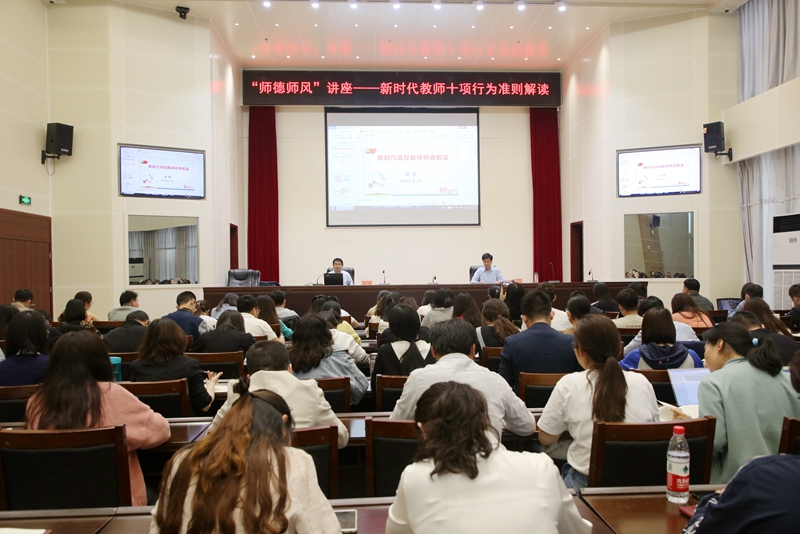 为深入学习贯彻习近平新时代中国特色社会主义思想和党的十九大精神,落实全国高校思想政治工作会议精神,进一步加强beat365在线平台官网师德师风建设,按照学校《关于开展师德师风建设主题活动月的通知》要求,5月11日下午,副校长赵聘在图书馆六楼报告厅作了《新时代高校教师职业行为十项准则解读》的专题讲座。beat365在线平台官网近三年新入职教师共240余人参加了此次讲座。