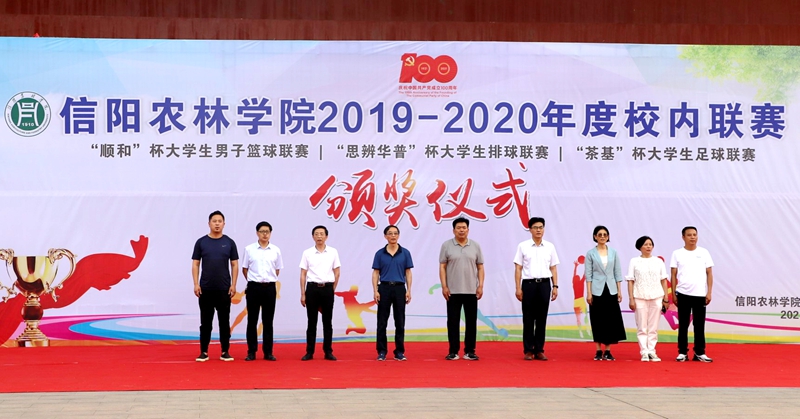 6月8日下午,由学校体育运动委员会主办,体育学院、学生处、校团委协办的beat365在线平台官网2019-2020年度校内联赛暨“顺和”杯大学生男子篮球联赛、“思辨华普”杯大学生排球联赛、“茶基”杯大学生足球联赛颁奖仪式在田径场举行。党委副书记黄松,副校长赵一鹏、黄遵东、王万玲,以及相关部门学院负责人参加了颁奖仪式,仪式由体育学院院长李俊主持。