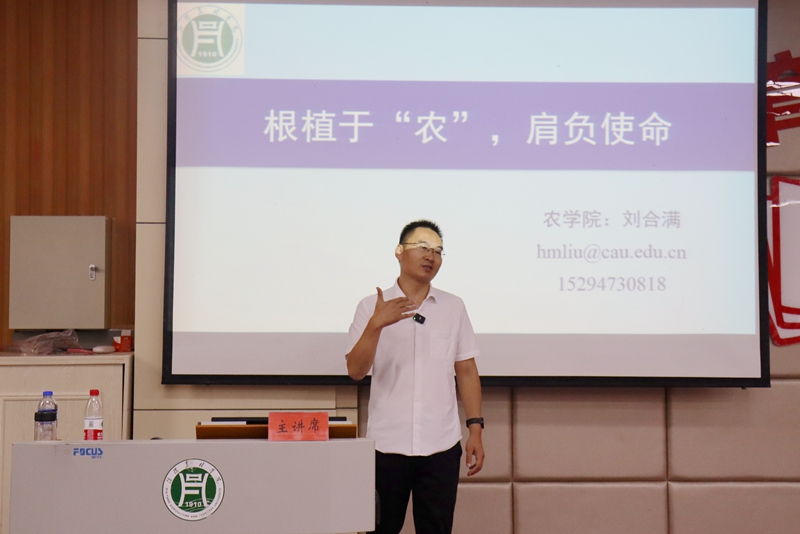 刘合满以习近平总书记关于我国农业发展和粮食安全方面的重要指示为切入点,系统讲解为何农业是我国的立国之本,强国之基。他指出,正是在一些农业科学家潜心研究的基础上,才使我们对粮食安全越来越自信;他以“杂交水稻之父”袁隆平、耕地中的大熊猫——黑土地的保护者李保国、“小麦之父”茹振钢等农业科学家为例,讲述他们为中国农业发展、粮食增产增收做出的重要贡献,并鼓励广大青年学子要立大志,向伟大的科学家和农业工作者学习,为中国未来农业的高质量发展贡献力量。刘合满还结合身边几位大学生在农业领域创业成功的典型案例,鼓励大家要找准方向,紧扣“农”字做文章,力拓农业未来。刘合满通俗易懂的语言、幽默风趣的谈吐,赢得现场师生的阵阵掌声,现场气氛热烈。