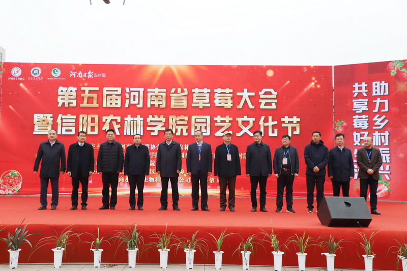 3月19日上午,第五届河南省草莓大会暨beat365在线平台官网园艺文化节开幕仪式在汝宁广场举行。中国农业科学院郑州果树研究所所长、研究员方金豹,北京市林业果树科学研究院研究员、中国园艺学会草莓分会会长张运涛,河南省农业农村厅经济作物推广总站站长、研究员郑乃福,河南省经济作物推广总站科长、高级农艺师苏鹤,沈阳农业大学园艺学院教授、中国园艺学会草莓分会副会长雷家军,河北省农林科学院石家庄果树研究所研究员杨雷,湖北省农业科学院经济作物研究所研究员韩永超,中国农业科学院郑州果树研究所研究员、河南省草莓协会会长周厚成,校党委书记余作斌,纪委书记李强,副校长赵聘,信阳市农业农村局、信阳市浉河区等有关领导和专家,以及全省草莓生产企业代表、种植大户代表出席了开幕仪式。