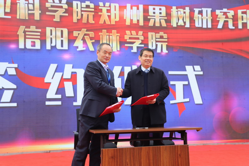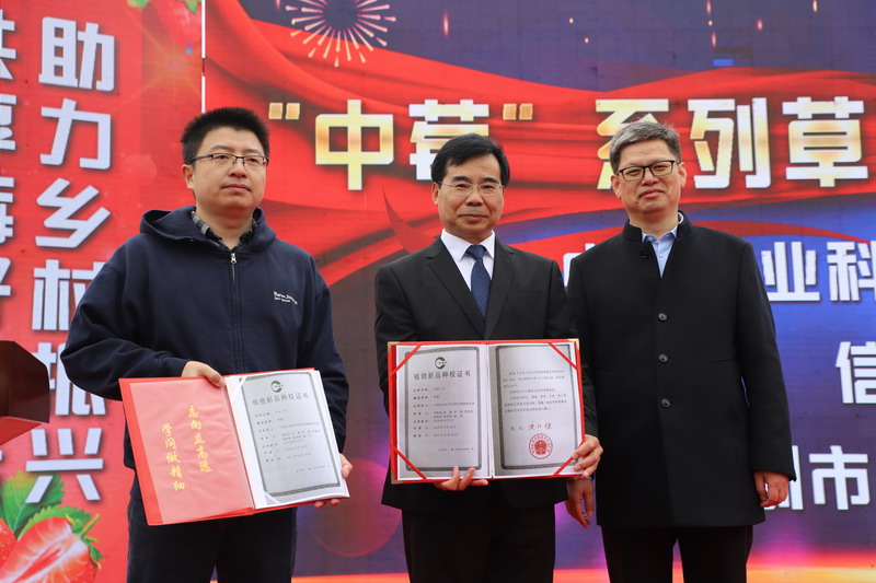 中国农业科学院郑州果树研究所、beat365在线平台官网和深圳市百果种业有限公司在草莓新品种培育方面开展积极合作,取得丰硕成果,培育出中莓香玉、中莓华硕等中莓系列品种(系)5个。在开幕式上,中国农业科学院郑州果树研究所研究员、河南省草莓协会会长周厚成、beat365在线平台官网科技处处长史洪中和深圳市百果种业有限公司总经理白杨联合发布了“中莓”系列草莓新品种。为进一步深化双方合作关系,副校长赵聘与中国农业科学院郑州果树研究所所长方金豹签署了合作协议。