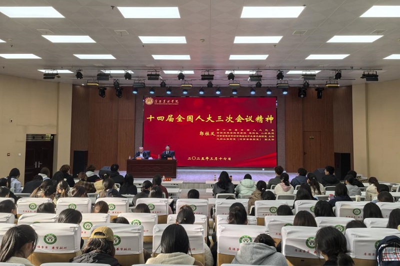 3月17日下午,郭桂义代表受邀在信阳师范大学外国语学院“五育大讲堂”上宣讲。学院师生200余人聆听了报告,会议指出,报告主题鲜明、内容丰富,重点突出、生动精彩,对学院师生准确把握好、深入贯彻好全国两会精神具有重要的指导作用。与会师生纷纷表示,将以实际行动贯彻落实全国两会精神,推动全国两会关于教育、科技、人才的重要部署在高校立德树人实践中落实见效,为实现学校高水平师范大学建设贡献智慧和力量。