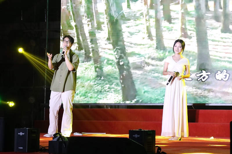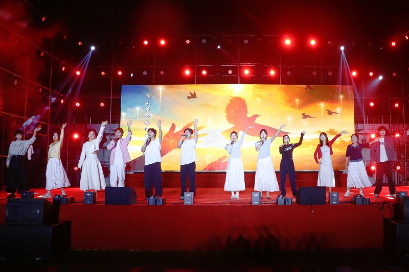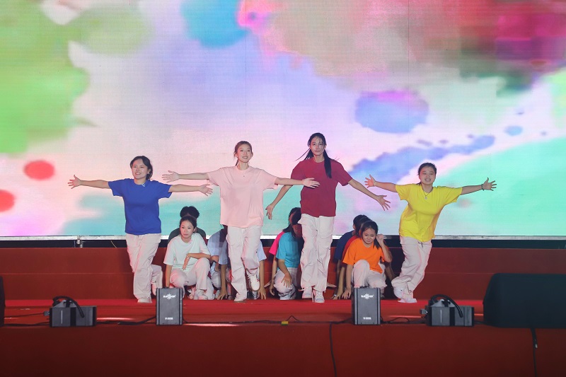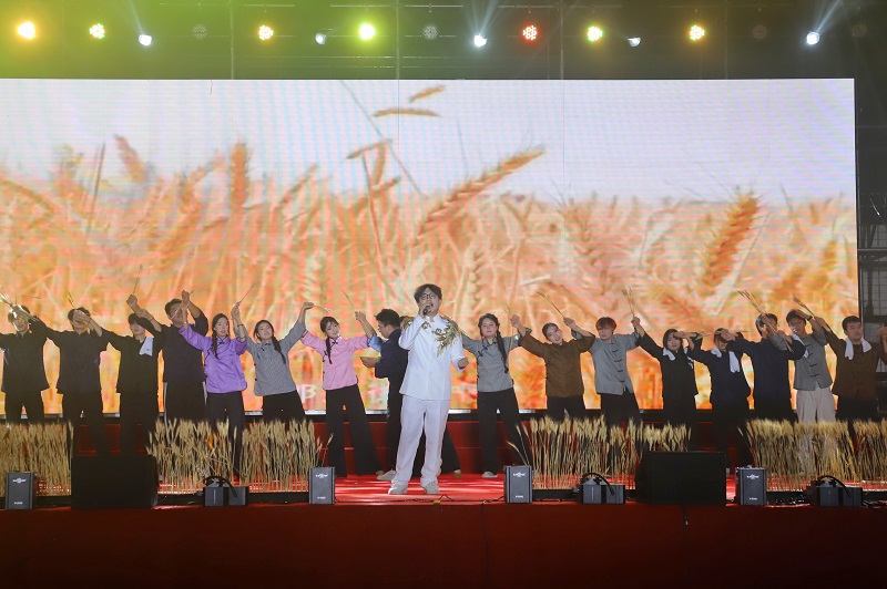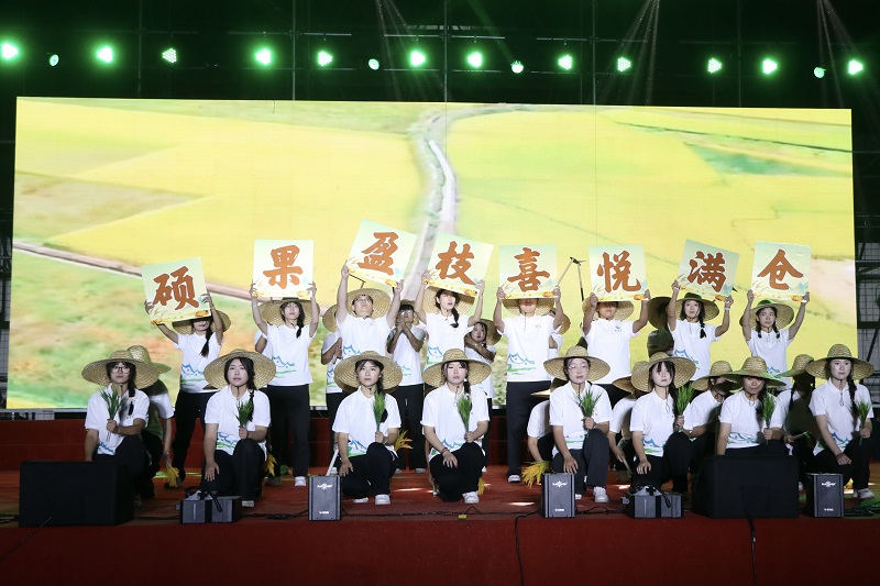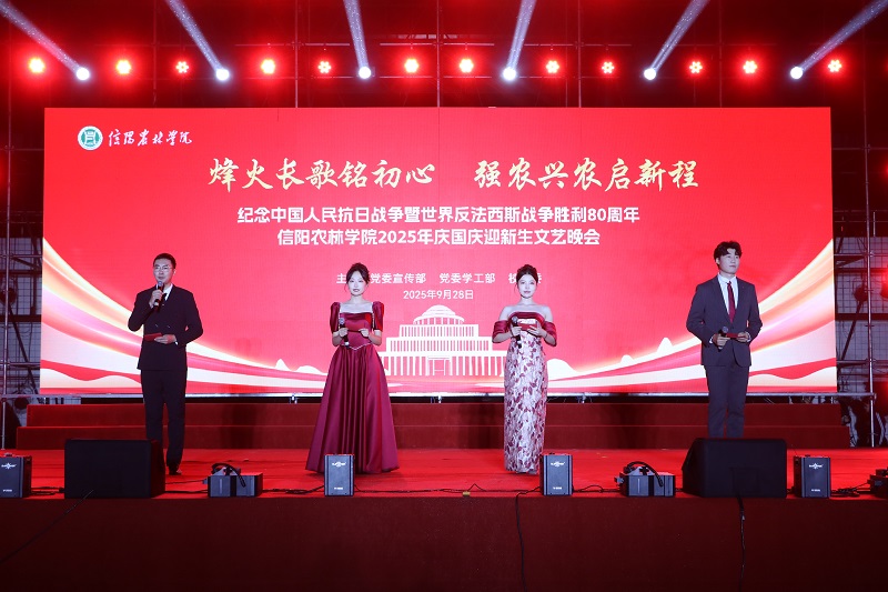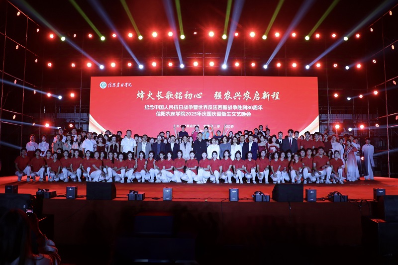 整场晚会聚焦历史回望又洋溢青春气息,舞蹈《庆丰收》以充满生活气息的舞姿,生动展现了劳动人民庆祝丰收的喜悦场景和蓬勃向上的精神风貌。街舞《燃动青春》以极具爆发力的节奏、高难度的技巧和充满张力的舞台表现,瞬间点燃了全场气氛。歌曲《铭记》以其深沉恢宏的旋律和真挚动人的歌词,为晚会带来了一个情感浓烈、引人深思的时刻;《我乘着风飞过来》以青春洋溢的旋律和充满希望的歌词,为晚会注入了无限的活力与憧憬;《强国一代有我在》以磅礴的气势和昂扬的激情,唱响了新时代青年的最强音。具有浓郁地方特色的歌曲《信阳等你》以优美的旋律和亲切的歌词,为晚会带来了一股清新之风,如同一封动人的“音乐请柬”,向来自全国各地的新同学展示了信阳这座城市的独特魅力与热情好客。融合了退休教师合唱队和大学生合唱团的合唱曲目《游击队之歌》和《英雄赞歌》是整场晚会中一个极具巧思与历史纵深感的节目,通过两首经典歌曲的创造性衔接,为观众进行了一次深刻的革命精神解读。舞蹈《光亮》和《一起向未来》通过细腻而富有张力的表演,象征了中华民族在历史危局中百折不挠、终获新生的精神历程,展现了青年一代开放包容、携手共进的精神风貌,传递了构建人类命运共同体的美好愿景。富有农林特色的茶艺表演《茗香雅韵》以行云流水的技艺和宁静致远的意境,为晚会带来了一股清新典雅的文化之风。情景剧《只有河南》激发年轻一代对土地、历史与家国的认同,形成深层文化共鸣。青春诵《誓言》更是将晚会推向思政育人高潮,青年学子以声为媒,将烽火岁月的历史记忆、炙热深沉的家国情怀与扎根“三农”的强农使命融入艺术表达,不仅生动展现了信农学子的青春风采与家国担当,更激励着2025级新生以理想为帆,以奋斗为浆,在民族复兴的壮阔征程中书写当代大学生的责任答卷,成为整场晚会的精神坐标。大合唱《我和我的祖国》将晚会推向最高潮,全场师生把对历史的缅怀、对和平的珍视、对青春的期许,全部升华为对祖国母亲的深情告白,生动诠释了个人命运与国家前途紧密相连的深刻主题,为整场晚会画上了一个激情澎湃、感人至深的句号。