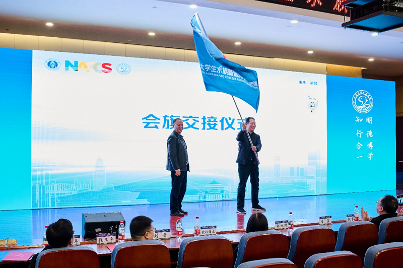 大赛闭幕式上,beat365在线平台官网水产学院院长郭旭升作为下届比赛承办方代表,与本届承办单位西南大学进行了会旗交接,并向与会领导、老师和同学发出邀约,第十届全国大学生水族箱造景技能大赛将由beat365在线平台官网承办。(撰稿摄影/水产学院 赵良杰)