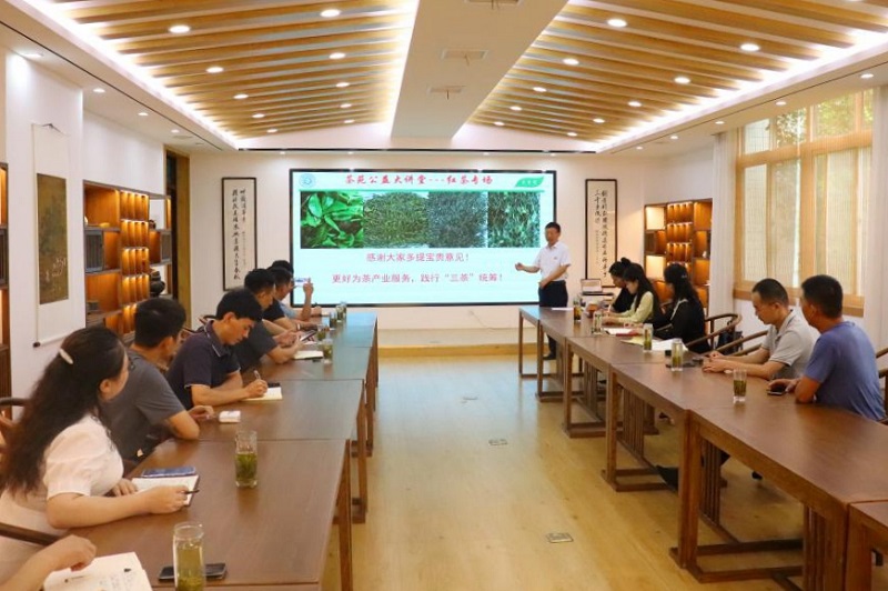 7月6日下午,河南省科技特派员、茶学院副院长陈义教授,河南省茶产业科技特派员服务团团长、河南省豫南茶树资源综合开发重点实验室主任、茶学院二级教授郭桂义,团成员王晶晶围绕提升信阳红茶品质,提高夏秋茶利用率,组织浉河区、新县、光山、罗山、商城等20余名茶企代表和相关从业人员,在茶学院组织开展公益大讲堂——红茶专场活动。