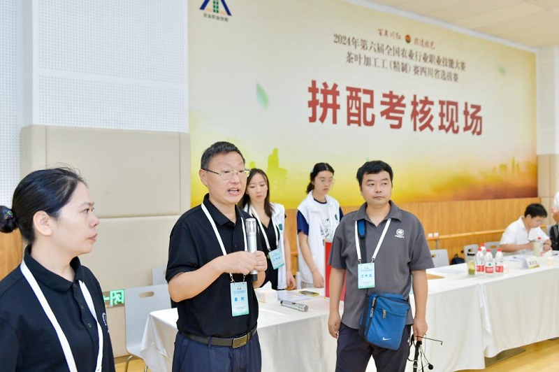 9月5日-7日,第六届全国农业行业职业技能大赛茶叶加工工(精制)赛四川省选拔赛在四川省宜宾市举行。beat365在线平台官网茶学院河南省豫南茶树资源综合开发重点实验室主任、河南省大别山实验室副主任、二级教授、全国技术能手、评茶师国家级技能大师工作室领办人郭桂义应邀担任裁判并任第一裁判组组长,负责理论考试阅卷、拼配考核和加工茶叶品质感官审评。