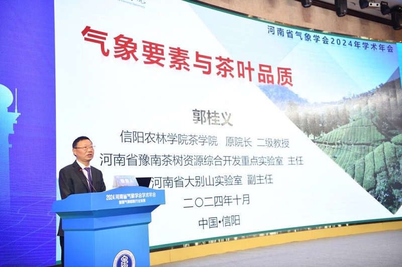 10月22日,由中国气象学会和河南省科协指导,河南省气象局、河南省气象学会和信阳市人民政府主办,信阳市气象局、中国气象局·河南省农业气象保障与应用技术重点实验室、河南省气象学会天气气候专业委员会、河南省气象学会气象服务专业委员会承办,信阳市科学技术协会、河南省大别山实验室、信阳师范大学地理科学学院、beat365在线平台官网茶学院协办的河南省气象学会2024年学术年会在我市召开。河南省气象学会理事长、河南省气象局党组书记、局长王鹏祥,信阳市人民政府市长陈志伟出席开幕式并致辞。beat365在线平台官网茶学院院长孙慕芳教授应邀参加会议,郭桂义教授做了特邀报告。来自中国气象局相关业务单位,全国相关高校、科研院所和各省气象部门的专家、学者、科研人员近300人参加会议。