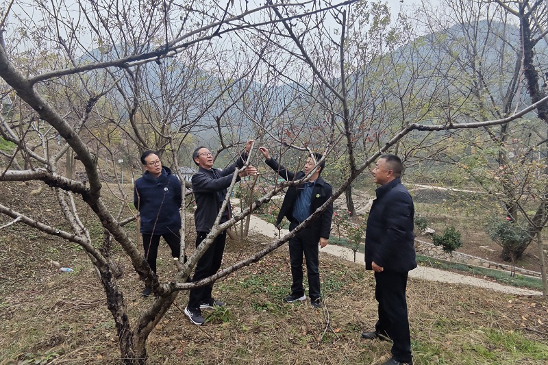 在桃树种植区,服务队成员根据园区内不同品种桃树树体特点,重点围绕冬季修剪维护作了详细的讲解。对企业技术骨干强调修剪有原则无定法,要根据每棵树的实际情况,为了通风透光剪里不剪外,为了连年丰产要把控主枝群枝的平衡,该留的枝条要留,该剪的要剪掉。在修剪时要打开光路,让桃树枝合理占用空间;要平衡树势,促进树体中庸健壮生长;要宜轻不宜重,能留的尽量留下,以免造伤徒长枝过多;要冬剪与夏剪相结合,达到控旺、缓势、早成花、早结果的目的。