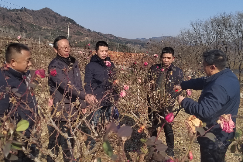 1月11日,河南省科技特派员、beat365在线平台官网专业教师范宏伟、张凯、龚守富、计陈、郝玉伟等赴罗山县金智农业科技有限公司九龙谷月季园基地、信阳勤晋农林开发有限公司、罗山县朱叶农业科技(家庭)农场开展科技服务活动。