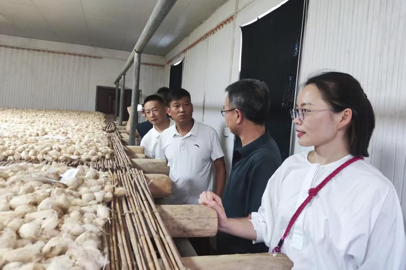 19日下午,服务团来到鲁山小尔城,针对传统村落的文旅资源保护与开发提供专业技术建议。随后,团队深入赵村柞蚕原种场,就柞蚕养殖技术与丝绸工艺现代化问题,为传承人提供实操指导,协助挖掘非遗项目的创新表达与传播路径。