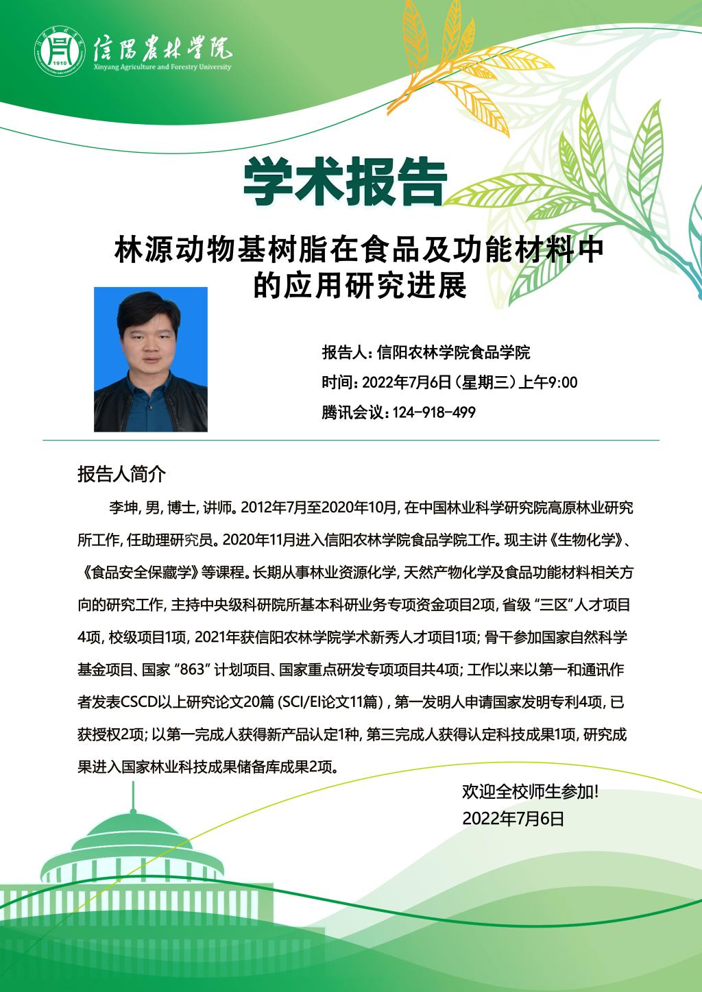 学术报告——林源动物基树脂在食品及功能材料中的应用研究进展