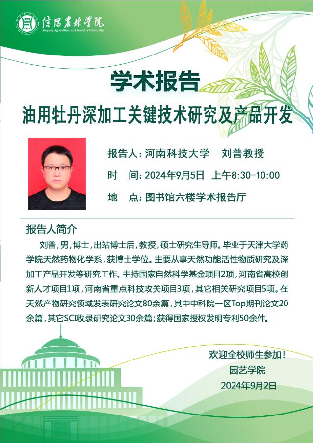学术报告——油用牡丹深加工关键技术研究及产品开发