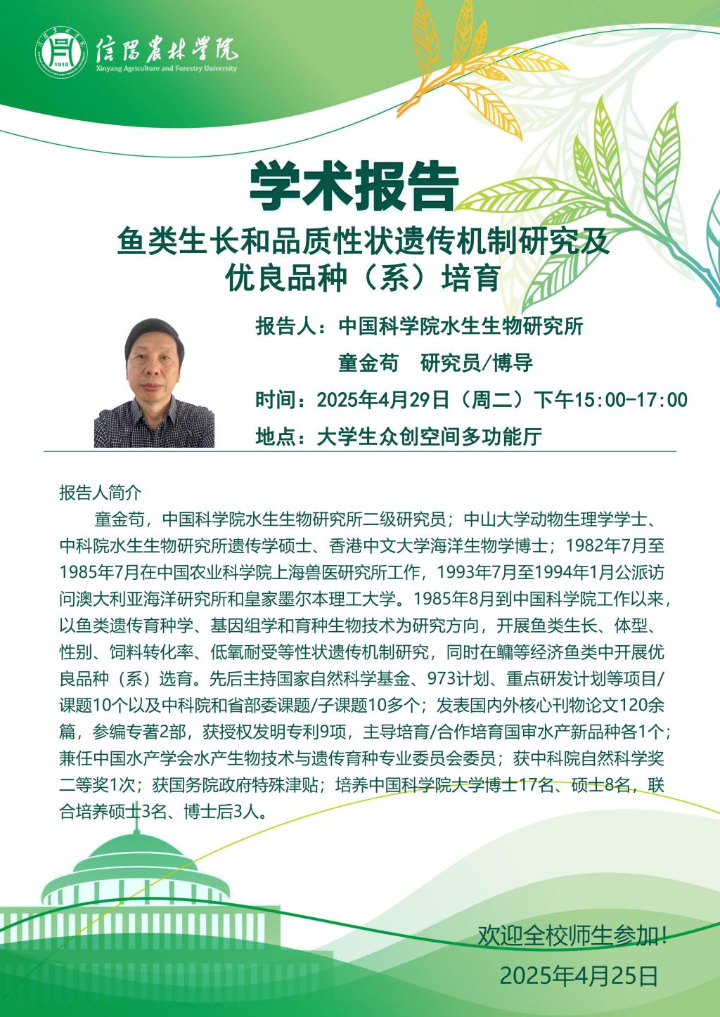 学术报告——鱼类生长和品质性状遗传机制研究及优良品种(系)培育