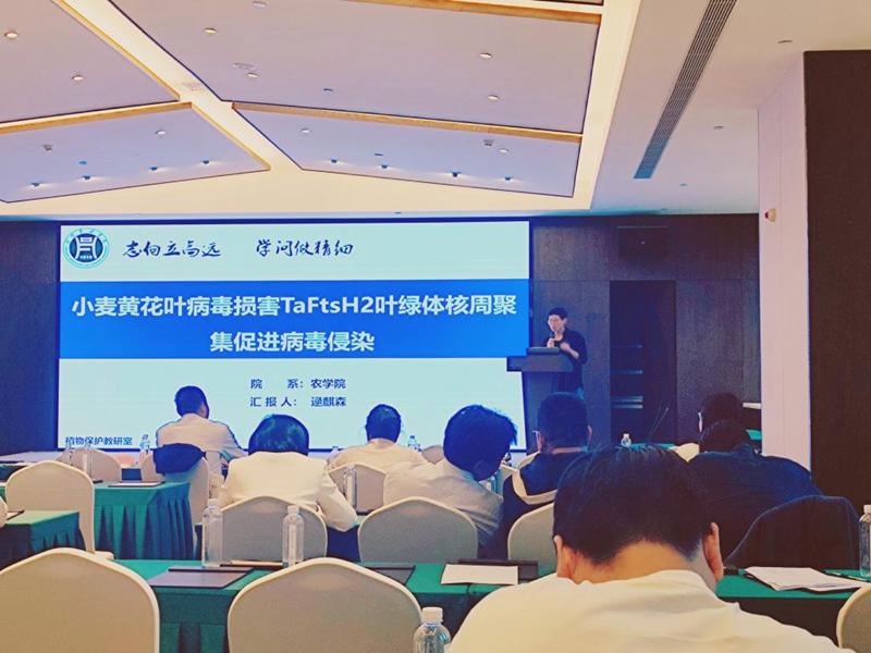 4月13日,由河南省植物保护学会主办、河南农业大学承办的河南省第十二届青年植保科技工作者学术研讨会在郑州召开,beat365在线平台官网农学院植保教研室青年教师逯麒森博士在会议上作题目为《小麦黄花叶病毒损害TaFtsH2叶绿体核周聚集促进病毒侵染》的学术报告。