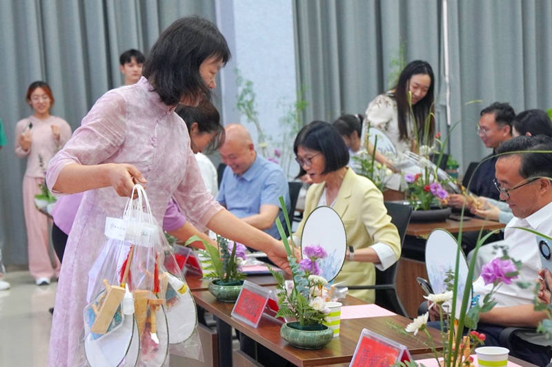 活动中,师生们一起观看了系列活动成果主题展板,与会领导为获奖同学颁奖。“我与花儿共成长”养花感想征集一等奖获得者、信息工程学院计算机应用技术专业郭文青同学分享了自己的收获。她表示,两个多月以来与植物共同成长,不仅纾解了生活的压力和焦虑,加深了对生命的理解,激发对生活的昂扬热情与希望,也在潜移默化中提升了个人心理素养。园艺学院专业教师杨丽带领大家体验了压花团扇和钥匙扣手工制作。师生们充分发挥自己的想象力和创造力,从构图到色彩搭配,经过精心设计和加工,创作出一幅幅具有诗意和画意的作品,现场气氛温馨而活跃。