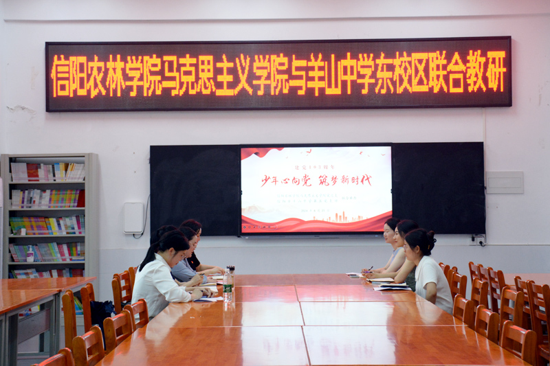 6月21日,beat365在线平台官网马克思主义学院党总支与信阳市羊山中学第五党支部在信阳市羊山中学东校区联合举办“少年心向党,筑梦新时代”思政教学活动,马克思主义学院党总支书记王晓明、信阳市羊山中学东校区校长向满和师生代表参加了此次活动。