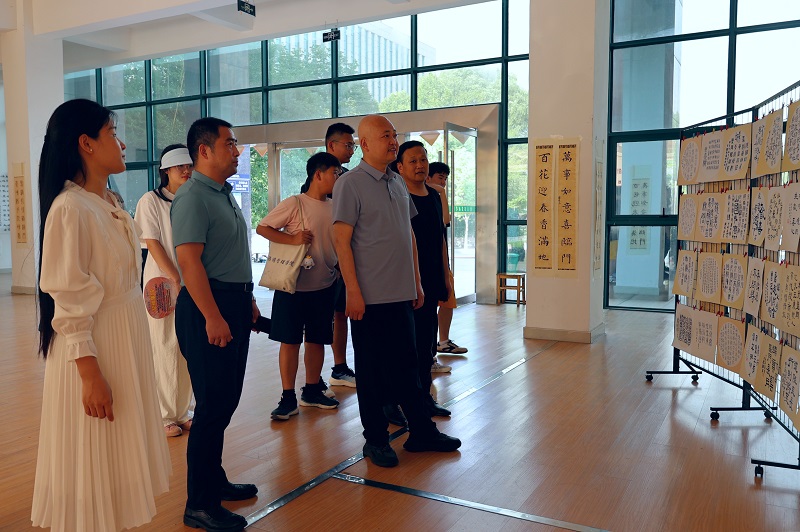 观展中,李益民对学生作品给予高度评价。他指出,校园文化建设是一个系统工程,需要全面、协调地发展物质文化、精神文化和制度文化。艺术教育注重培养学生的创造力和想象力,鼓励他们自由表达和创新。通过以书法为载体的艺术形式开展校园文化建设,可以培养学生的个性与能力,提升他们的文化素养,促进学生的全面发展。