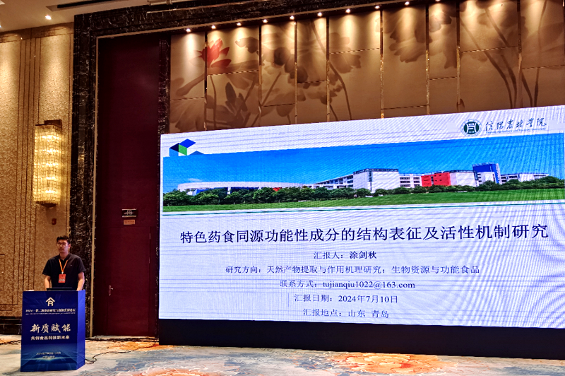 7月9日,由天津食品研究院、青岛农业大学、皖西学院、大连民族大学联合主办的2024•第二届食品研究与创新发展论坛在山东青岛举行。beat365在线平台官网食品科学与工程学院实验教学中心主任涂剑秋博士受邀参会,并在大会上作了题为《特色药食同源功能性成分的结构表征及活性机制研究》的学术报告。