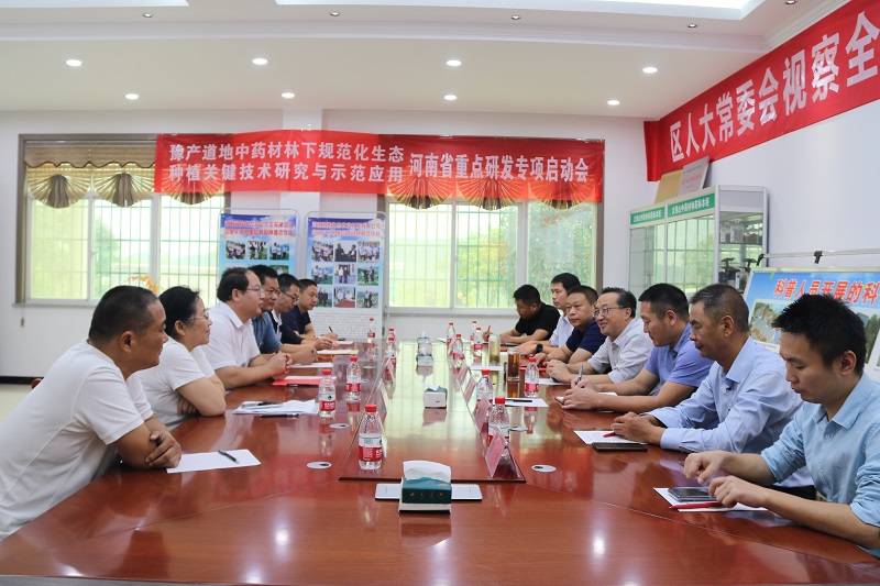 9月12日上午,由beat365在线平台官网牵头承担的2024年度河南省重点研发专项“豫产道地中药材林下规范化生态种植关键技术研究与产业化示范应用”项目启动会在合作承担单位河南润辉生态农业开发有限公司召开。副校长李益民、信阳市科技局四级调研员徐阔强出席会议。项目评议专家、科技处相关负责同志、项目负责人及项目团队成员等20余人参加会议。药学院院长王家东教授主持会议。