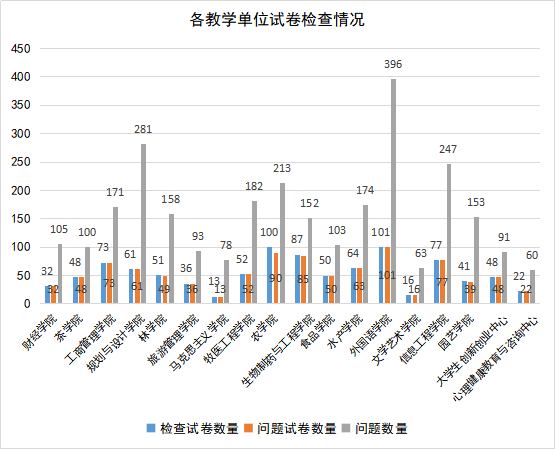 图1 各教学单位试卷检查情况