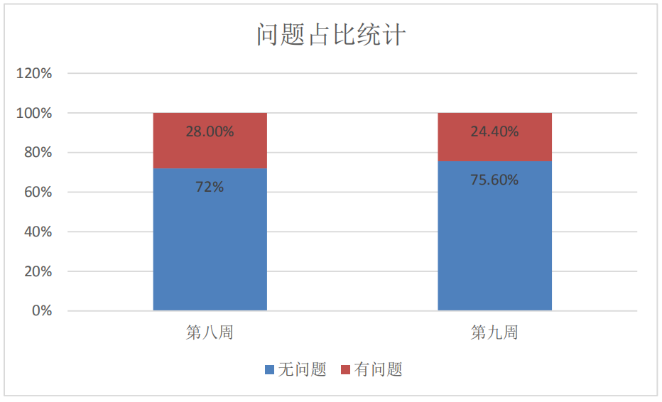第八周开课共计1337门次,教师满意率为90.6%。第九周开课共计1939门次,教师满意率为87%,相较第九周降低3.6%。统计结果显示,线上教学问题依然存在,第八周出现问题的课程占比为28%,第九周为24.4%,整体降低了3.6%。仍然存在个别教师和学生操作困难现象。
