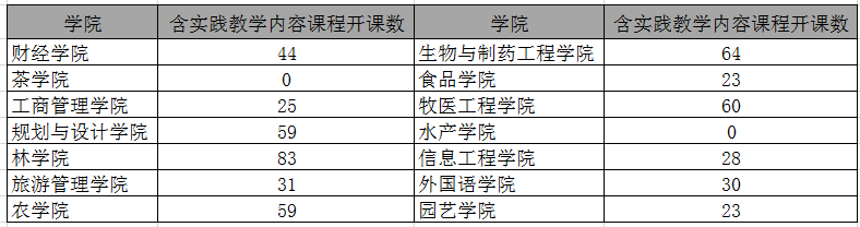 表1 各教学单位含实践教学内容课程开设情况一览表