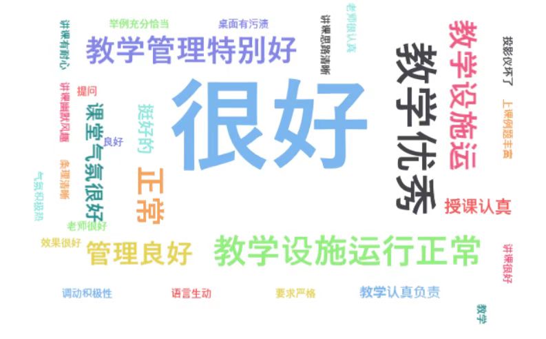 词频反馈学生教学信息员对学校整体教学管理认可,这与上面几项问题的结果呈正相关。