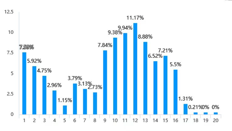 从学生教学信息员提交信息反馈的周次来看,除了第五周对应的国庆节学生反馈较少,其余教学周的反馈基本实现了常态化。(详见下图表)